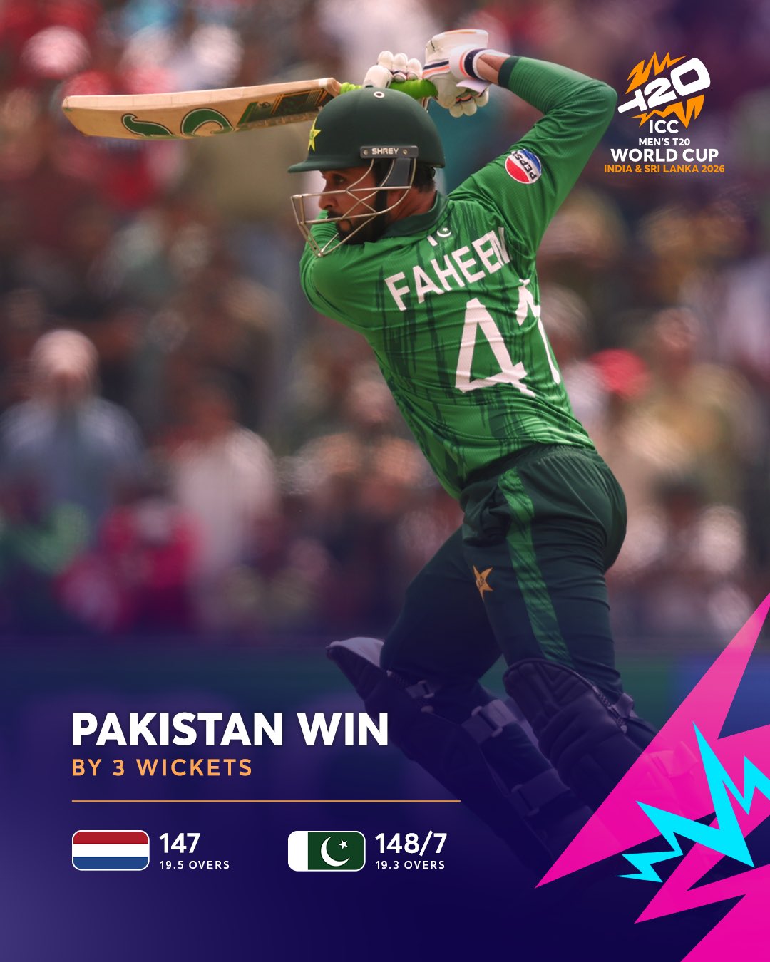 টি-২০ বিশ্বকাপের উদ্বোধনী ম্যাচে ডাচদের বিরুদ্ধে কষ্টার্জিত জয় পাকিস্তানের